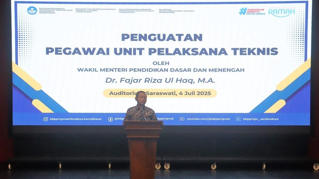Penguatan peran dan kapasitas pegawai Unit Pelaksana Teknis (UPT) di lingkungan Kemendikdasmen menjadi sorotan dalam kegiatan “Penguatan Pegawai UPT Kemendikdasmen” yang digelar Jumat (4/7/2025) di Auditorium Saraswati BBPPMPV Seni dan Budaya Yogyakarta.