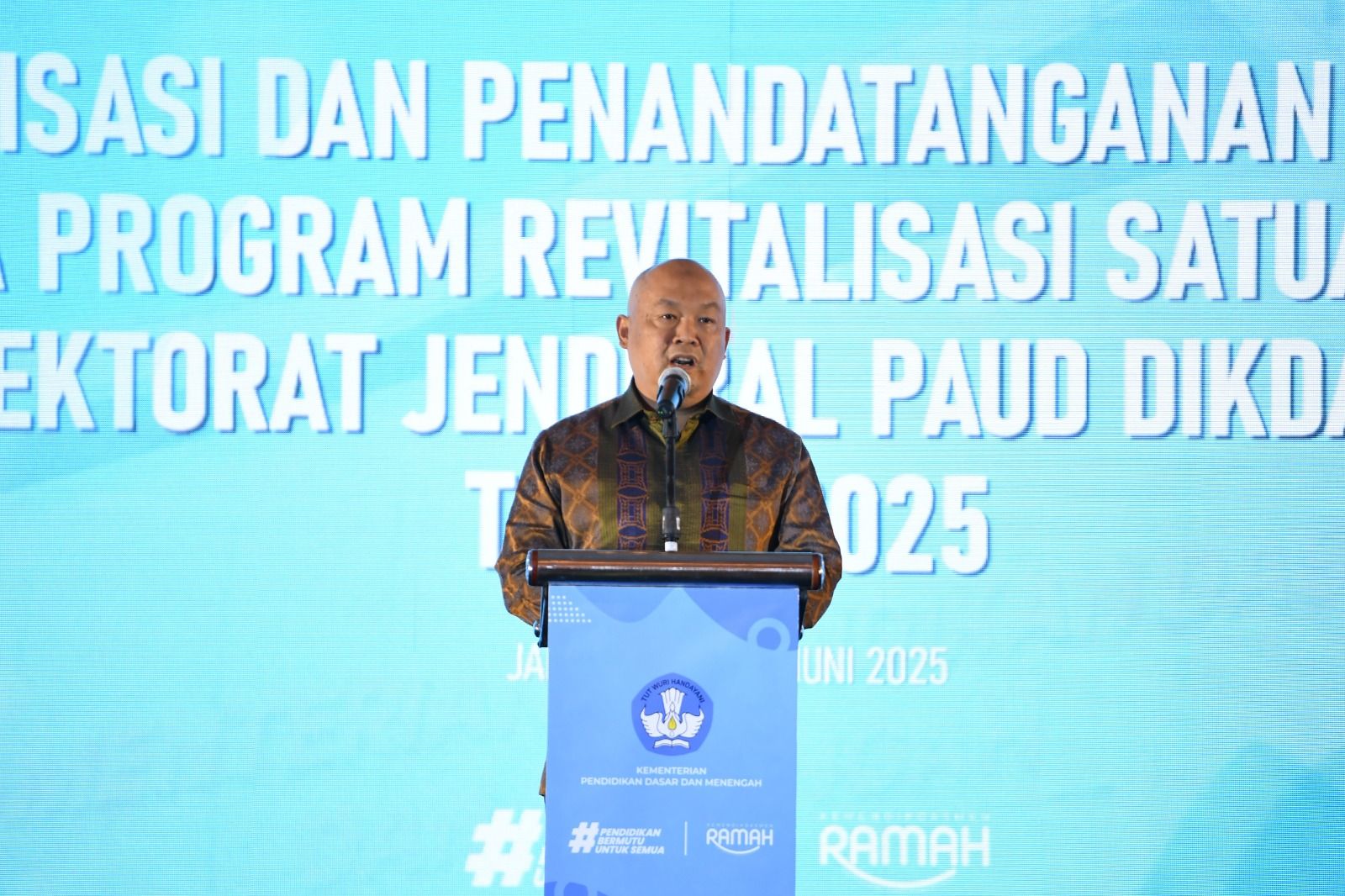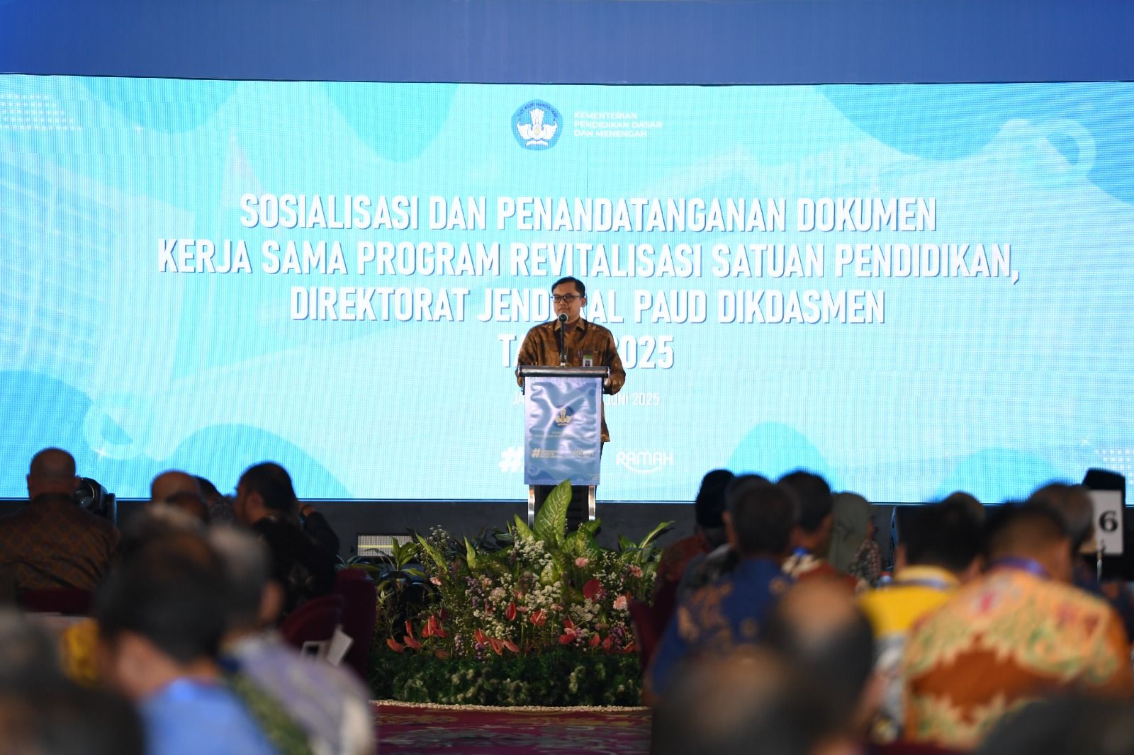 Jakarta, 5 Juni 2025 - Kementerian Pendidikan Dasar dan Menengah (Kemendikdasmen) melalui Direktorat Jenderal Pendidikan Anak Usia Dini, Pendidikan Dasar, dan Pendidikan Menengah (Ditjen PAUD Dikdasmen) secara resmi melaksanakan Penandatanganan Nota Kesepahaman (PKS) Program Revitalisasi Satuan Pendidikan bersama 31 Kepala Dinas Pendidikan Provinsi dan 503 Kepala Dinas Pendidikan Kabupaten/Kota.