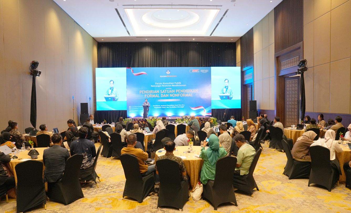 DIREKTORAT Jenderal Pendidikan Anak Usia Dini, Pendidikan Dasar, dan Pendidikan Menengah (Ditjen PAUD Dasmen), Kementerian Pendidikan Dasar dan Menengah (Kemendikdasmen), menggelar Forum Konsultasi Publik tentang Pendirian Satuan Pendidikan Formal dan Non-Formal di Hotel Sultan, Jakarta, pada Kamis, 18 Desember 2025.